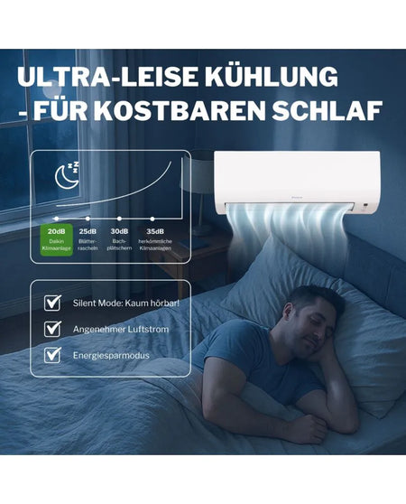 Funktionen: Komfort Komfort-Modus, Power-Modus, Automatische Umschaltung Kühlen/Heizen, Flüsterleise (bis 19 dB(A)), Flüsterleiser Betrieb des Innengerätes, Flüsterleiser Betrieb des Außengerätes, Nahezu unhörbar